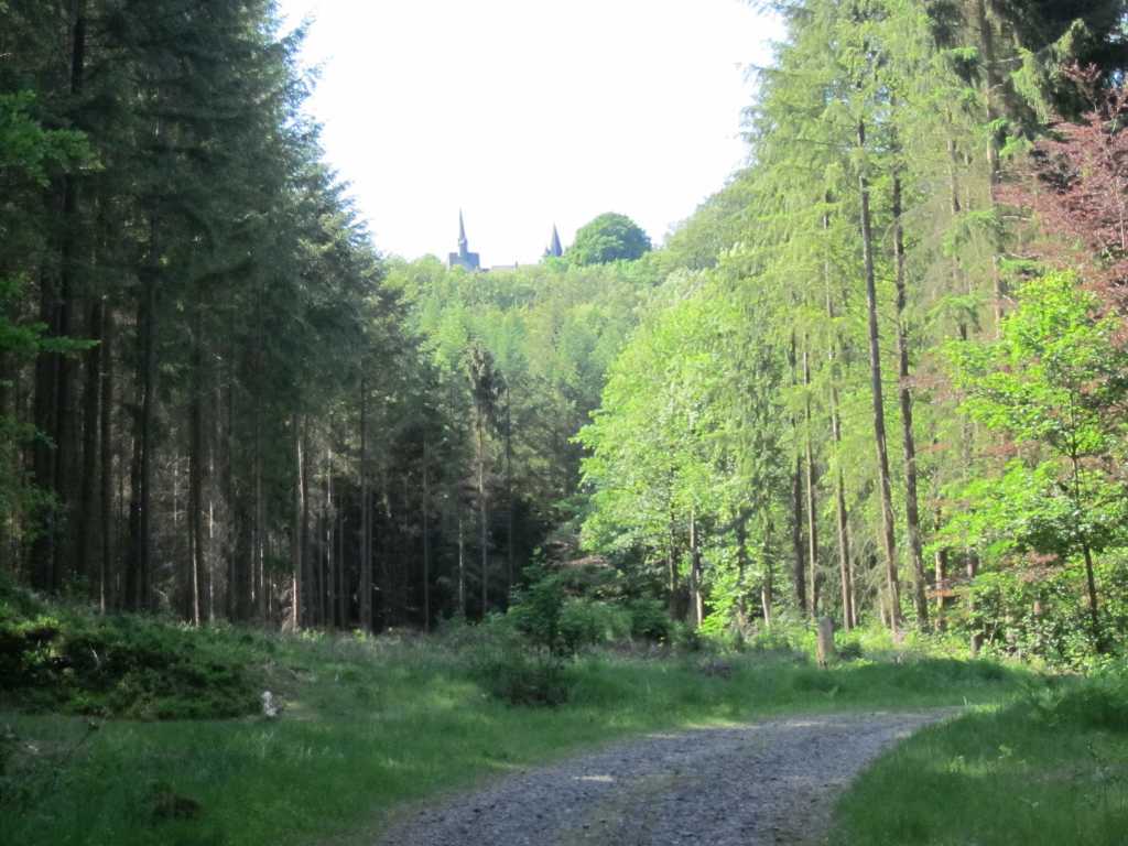 An der Kirche und am Sportplatz vorbei immer geradeaus in den Wald. Sie kommen an Fischteichen und normalen Teichen vorbei und nach ca. 2 Kilometern ab Sportplatz erreichen Sie den Spiegelteich.