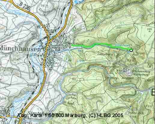 Zu erreichen ist die Bonifatiusquelle über Münchhausen. In Ortsmitte folgen Sie den Hinweisen zum Sportplatz (von Wetter her kommend rechts kurz vor der Abzweigung der B 263 nach Battenberg/ Winterberg).