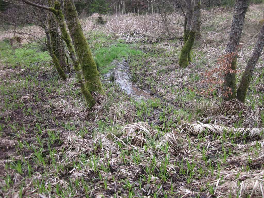 Hier, etwa 100 Meter vor dem Herrenwege... | ...müssen Sie links ins Tal. | Es ist hier sehr morastig. | Wasser führt diese Quelle genug | Die Herrenbrücke ist nur 100 Meter entfernt |