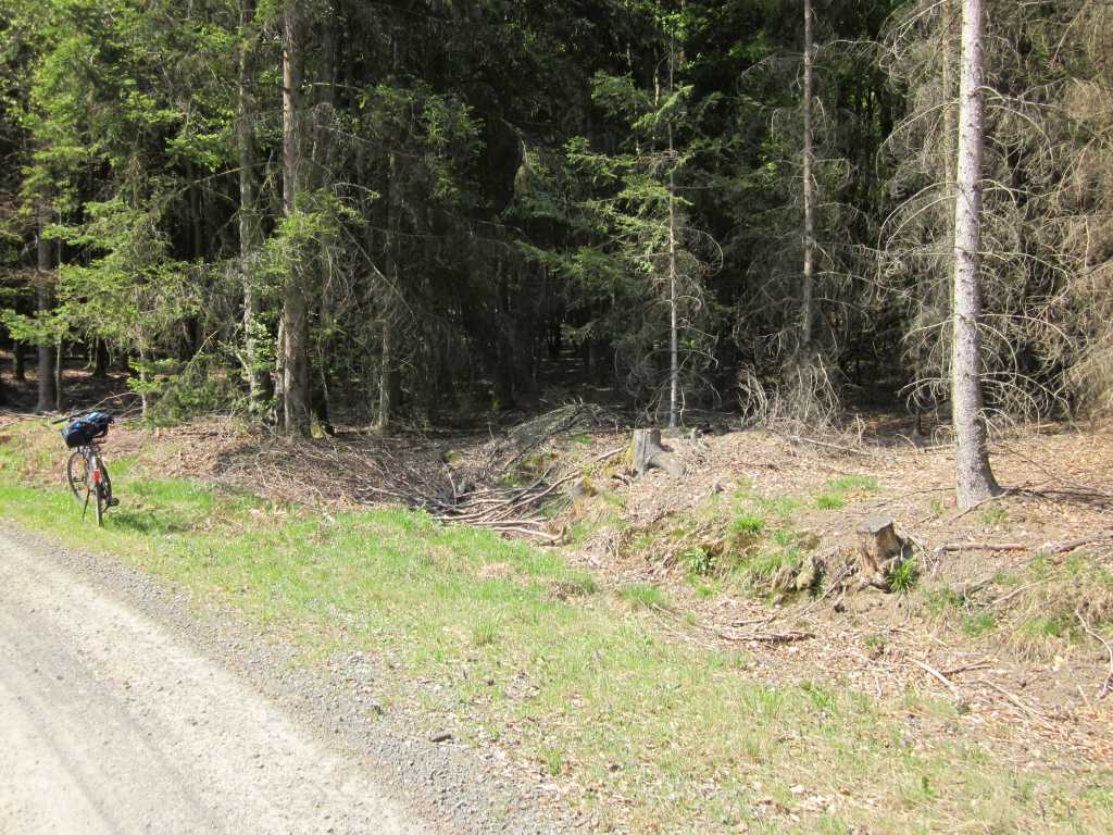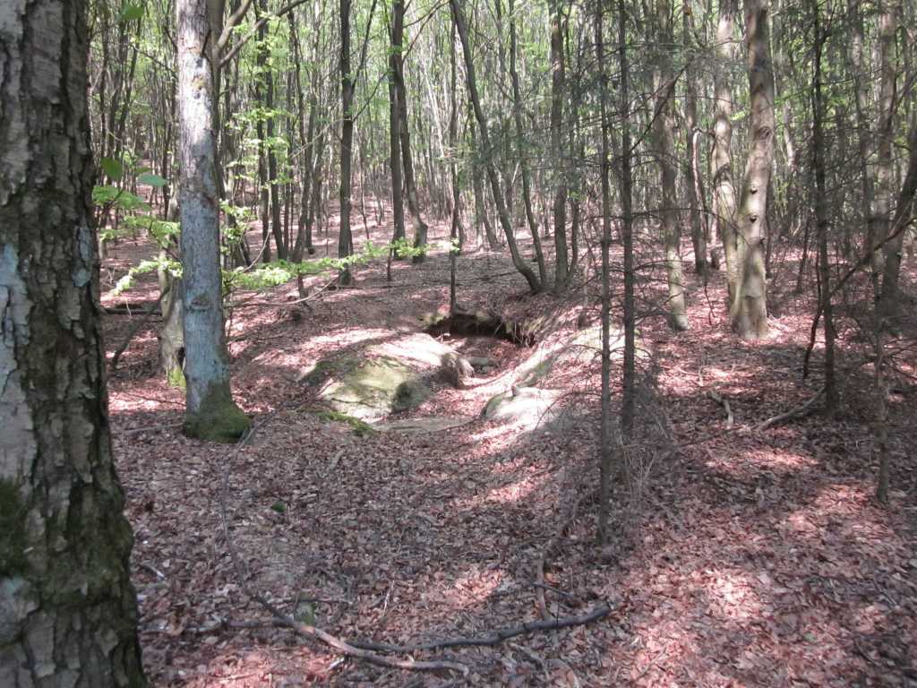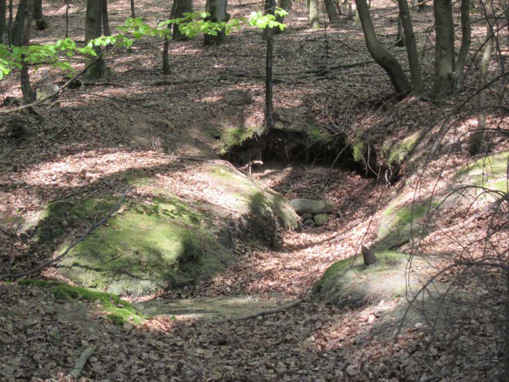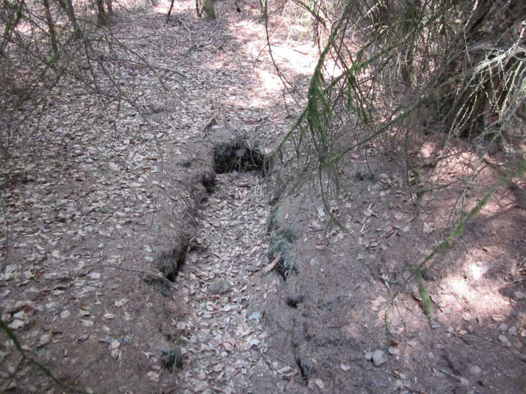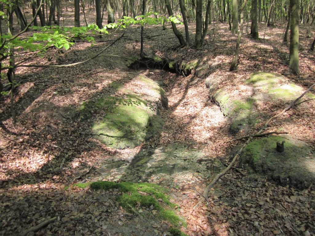 unterhalb der Quelle sieht man von der Straße aus einen Graben; es