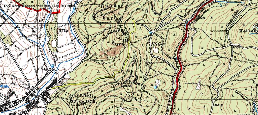 Diese Quelle liegt von Oberrosphe aus gesehen hinter der Hundeburg