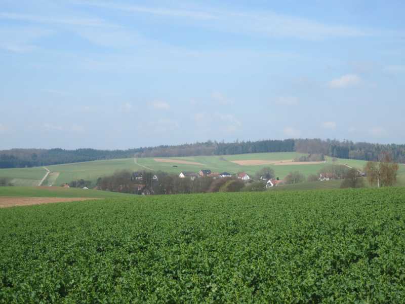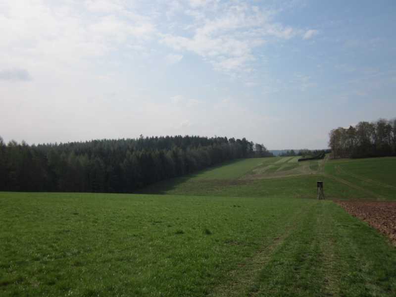 Feldweg geradaus bergauf nehmen. Oben am Wald biegen Sie nach rechts