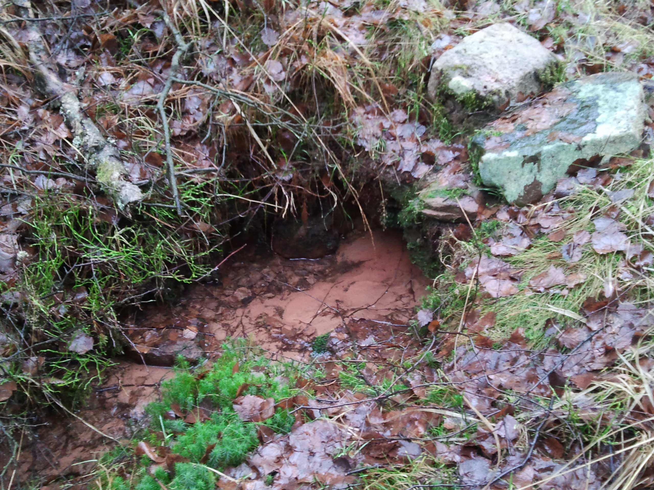 Dem Weg folgen Sie etwa 1,2 Km. Er führt in den "Sauersgrund". Am Anfang einer etwas längeren Geraden, rechts bei dem Hochsitzt, haben Sie die Meier-Quelle erreicht.