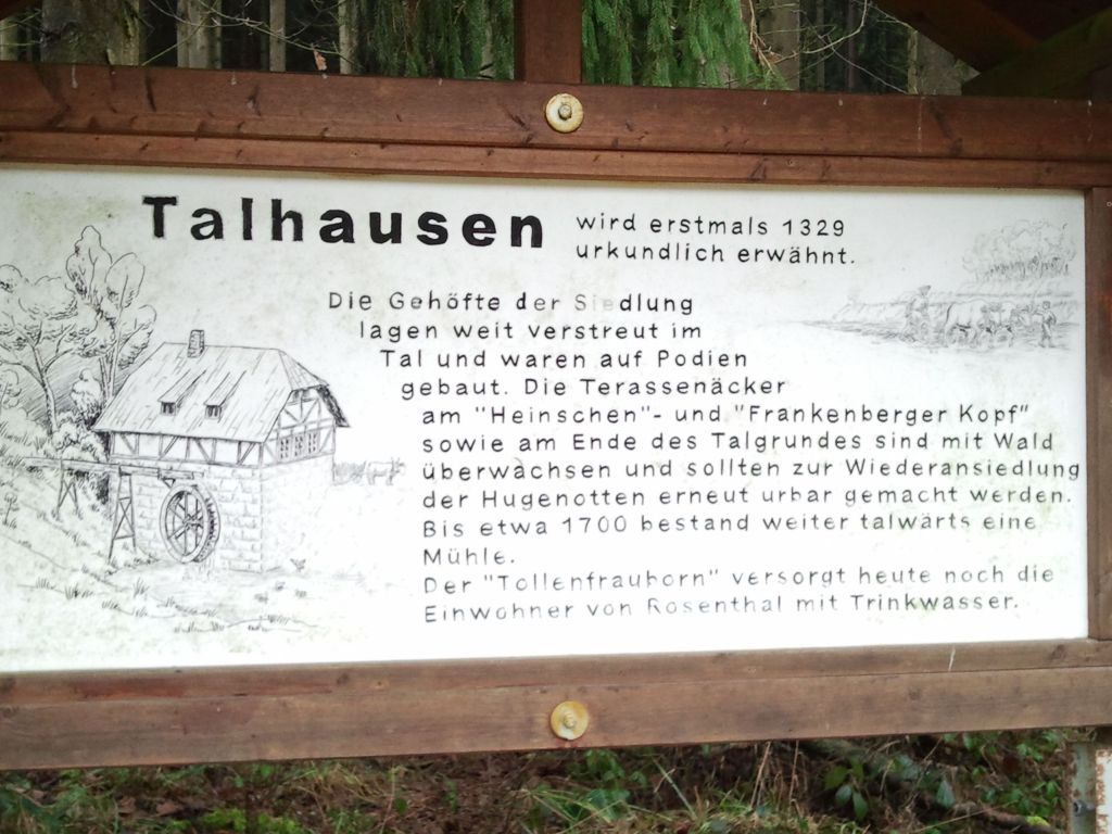 Wüstung Talhausen mit Hinweis auf den Tollefrauborn. | In dieser Wiese... | ...befindet sich die Quelle; |