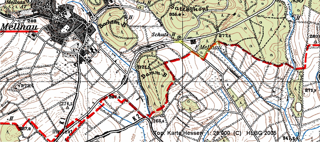Gehen Sie südöstlich den geteerten Weg Richtung Oberrosphe etwa 300 Meter bis