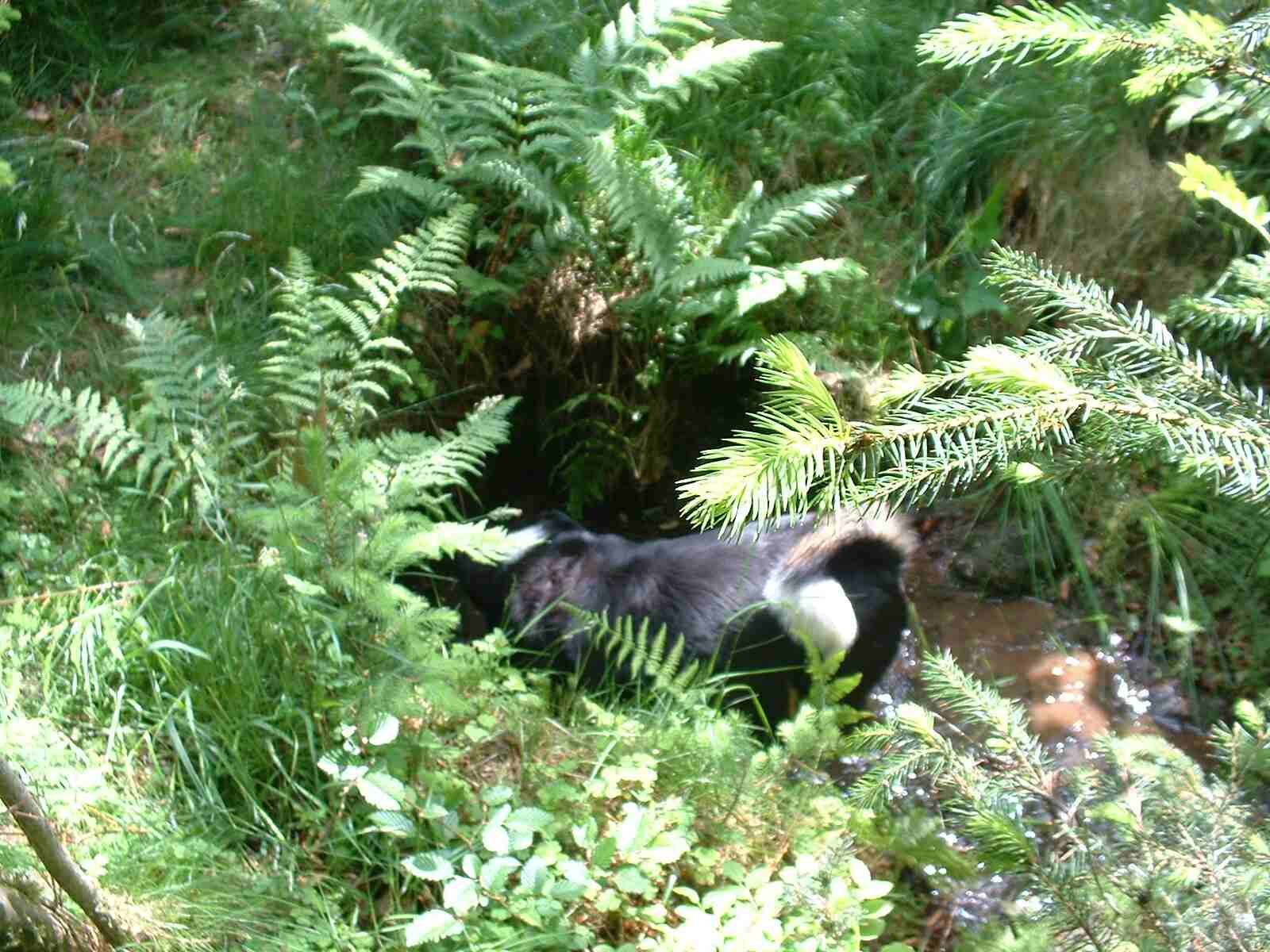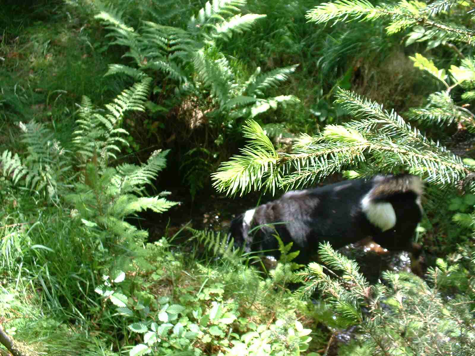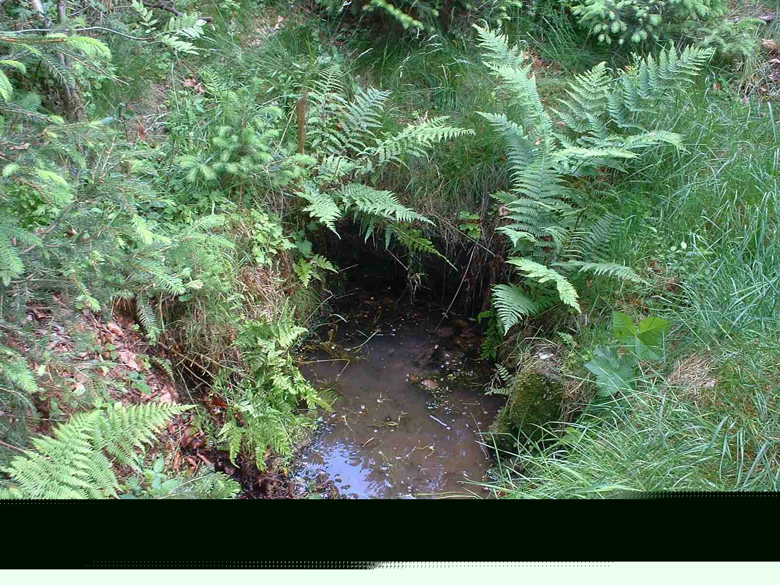 Die Quelle liegt etwas versteckt... | hier wurde früher Pferde getränkt... | ...heute schmeckt es meinem Hund. | Die Quelle führt im Frühsommer gut Wasser | Das ist das Wegende. Hier ist die Quelle. |
