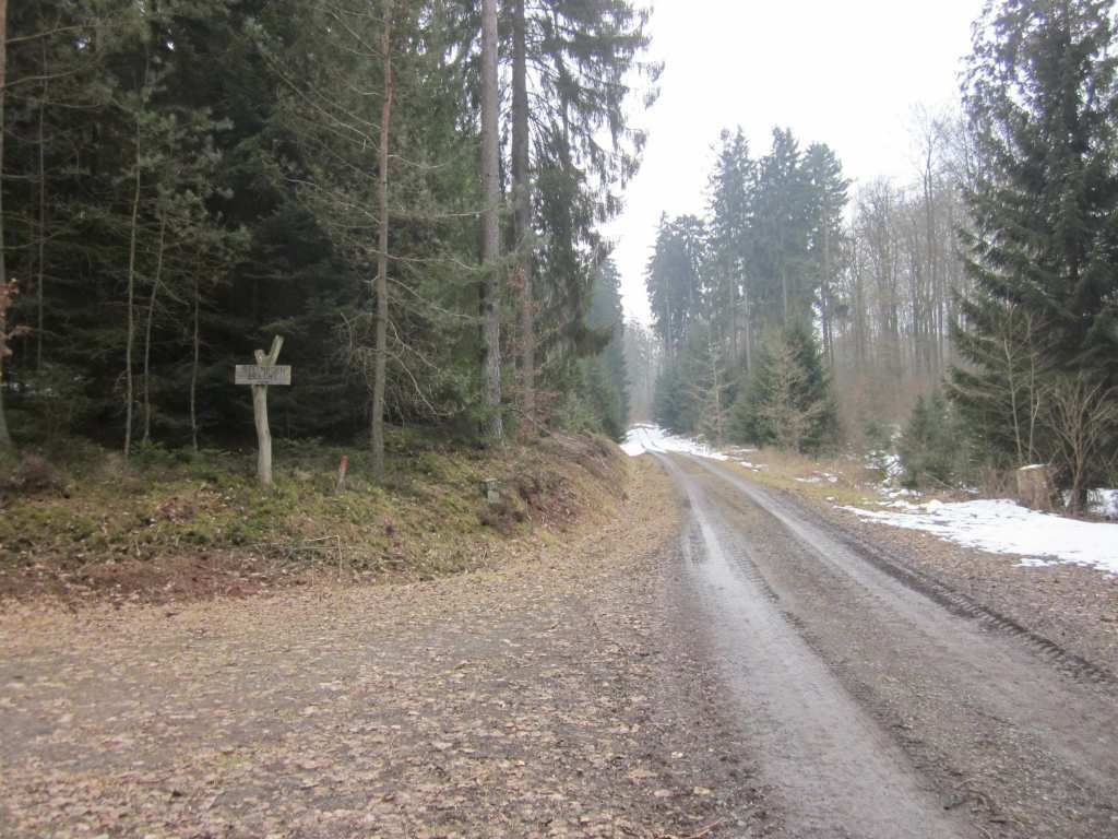 den befestigten Weg nach rechts als Start für eine Wanderung nehmen.