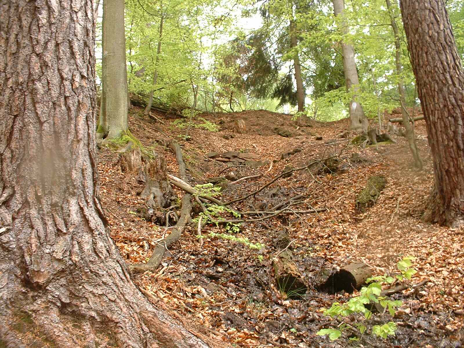 Zugang zur Quelle | Viele Äste... | ...versperren den Weg | Die Quelle ist nicht gefasst | Wasser steht bis zum Rand |