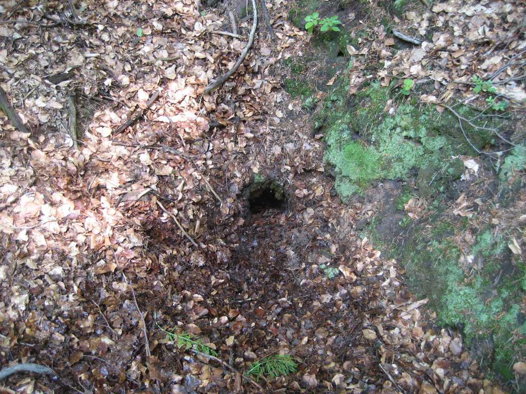Diesen Weg gehen Sie in die rechte Richtung. Nach etwa 500 Metern biegt ein Grasweg nach rechts ab. Bleiben Sie jedoch auf dem befestigten Weg. 30 Metern weiter haben Sie die erste Quelle erreicht: sie liegt links vom Weg, etwa 10 Meter oberhalb.