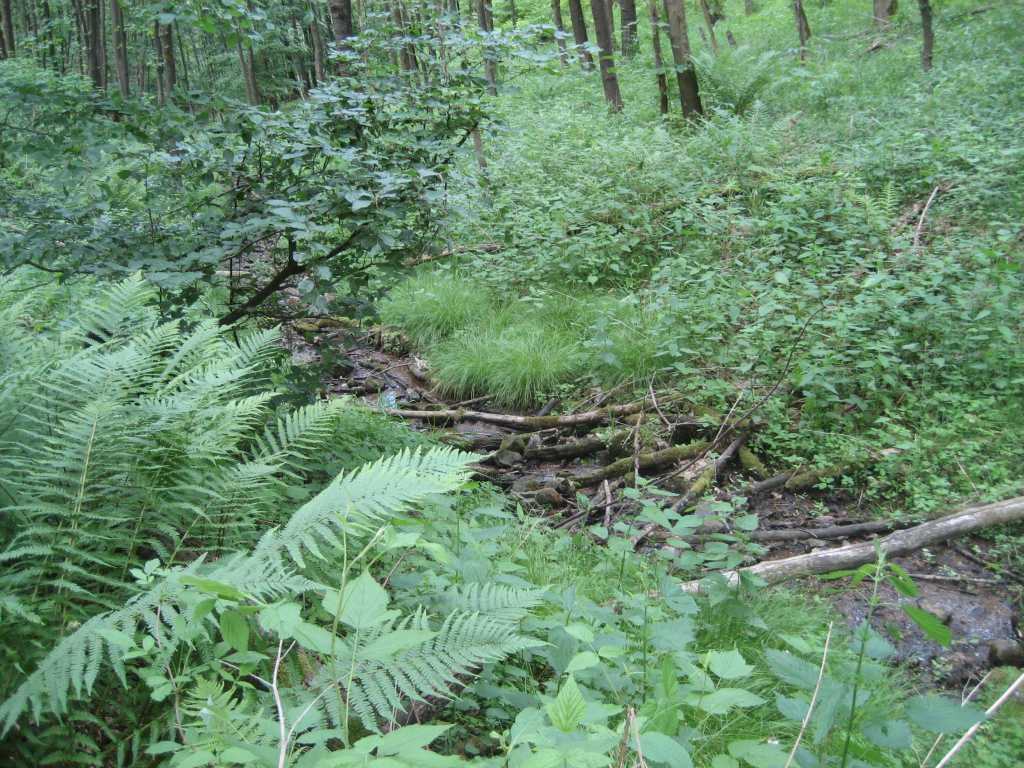 Nach etwa 300 Metern in einer Linkskurve ist links der Quellbereich der