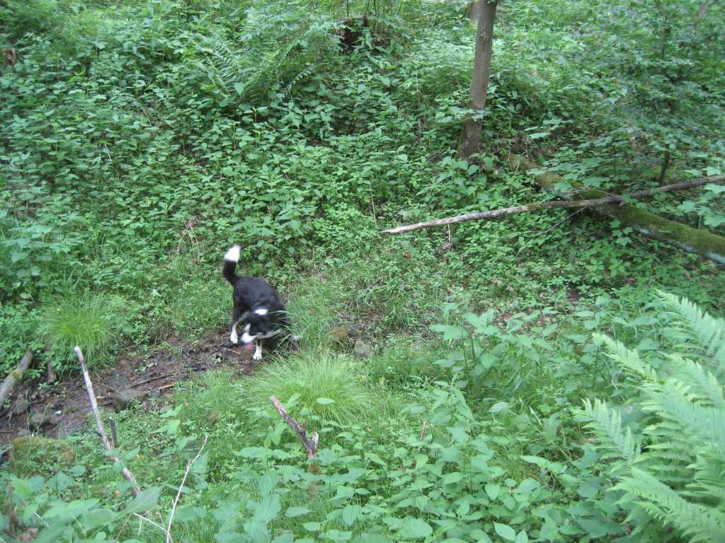 einen unbefestigten Waldweg und nach 50 Metern gleich wieder rechts.