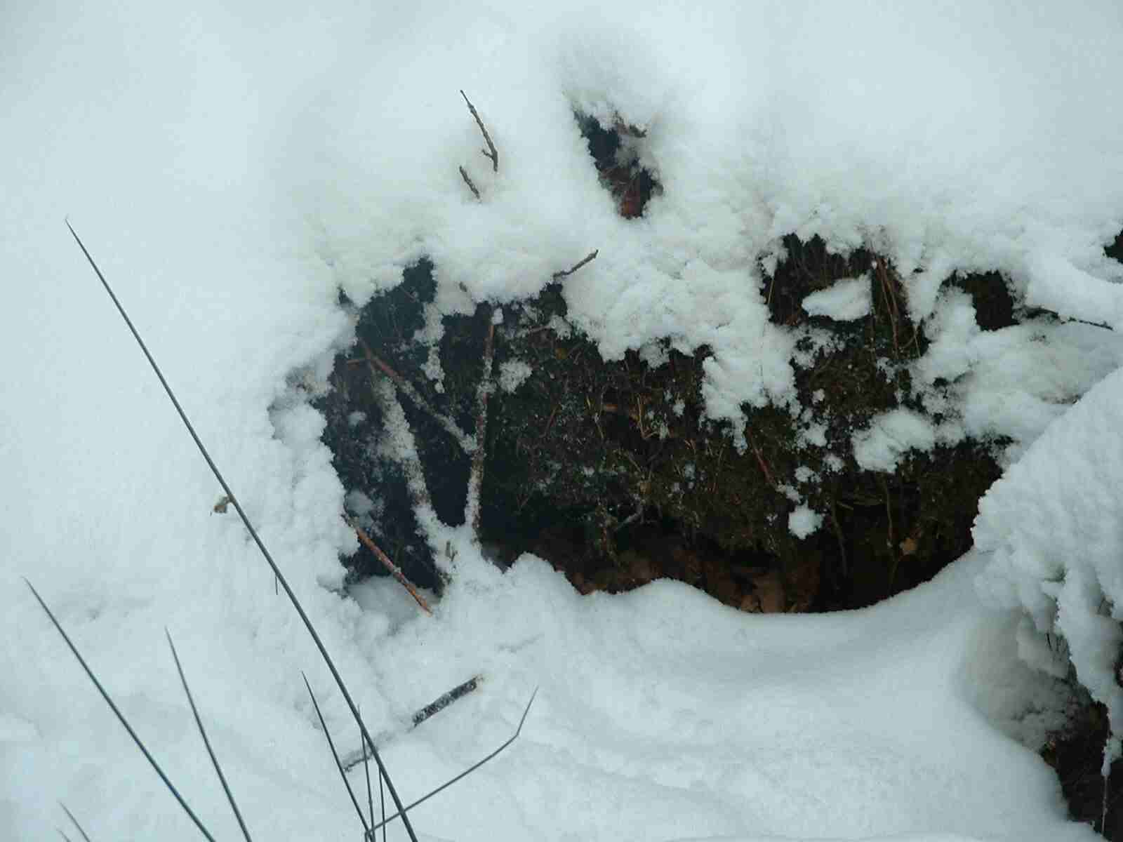 Völlig unscheinbar... | ist diese Quelle, ... | die kein Wasser mehr führt. | Zur Orientierung: rechts etwa 4 Meter weiter ist die Quelle. |