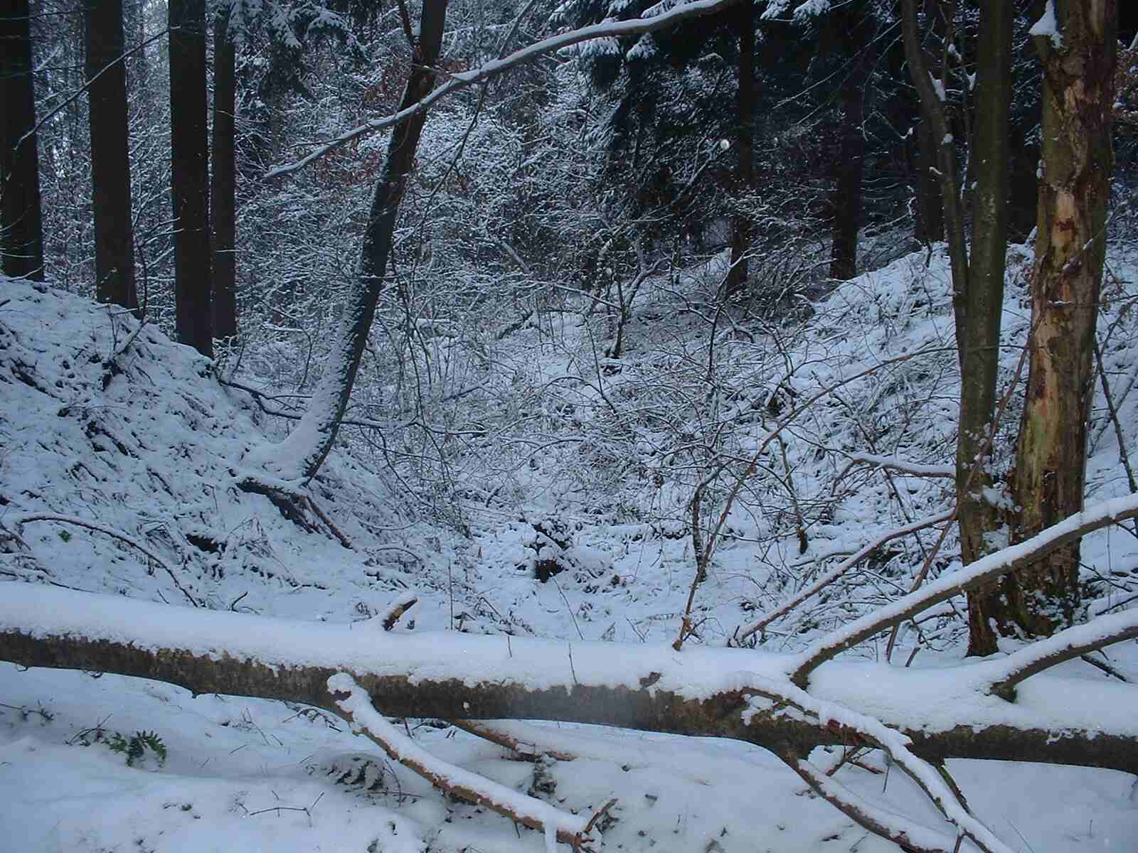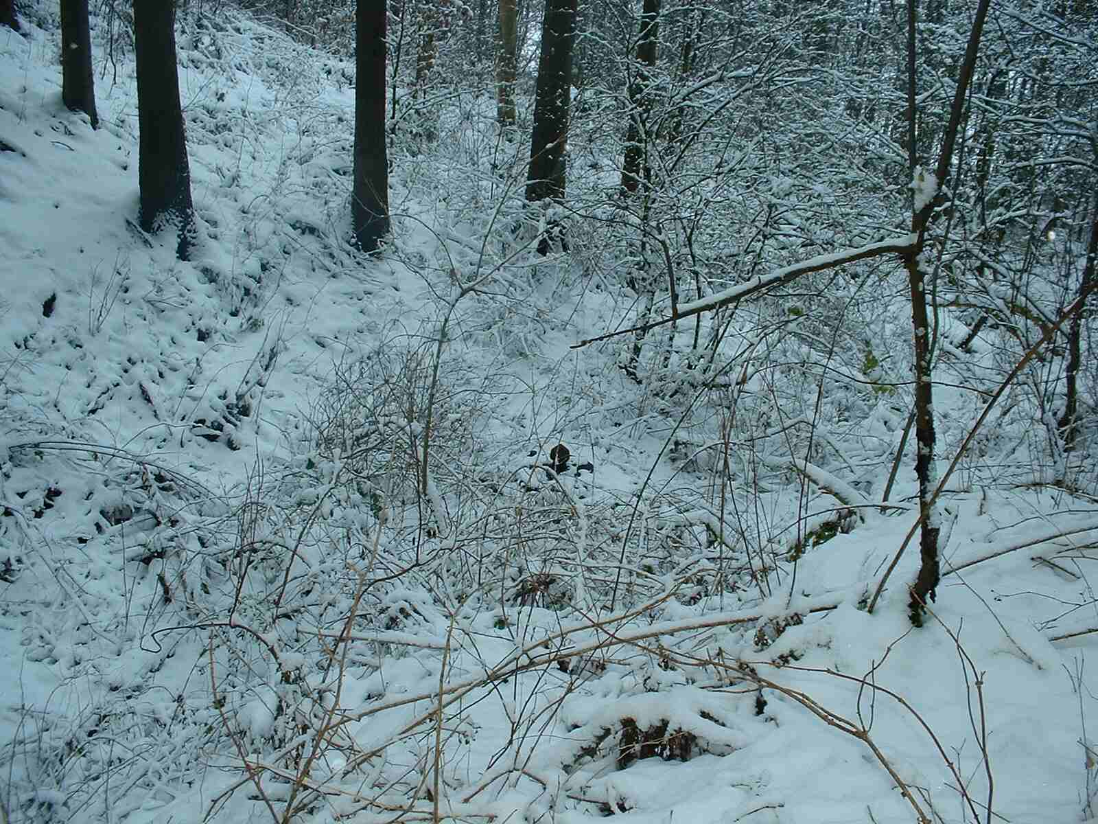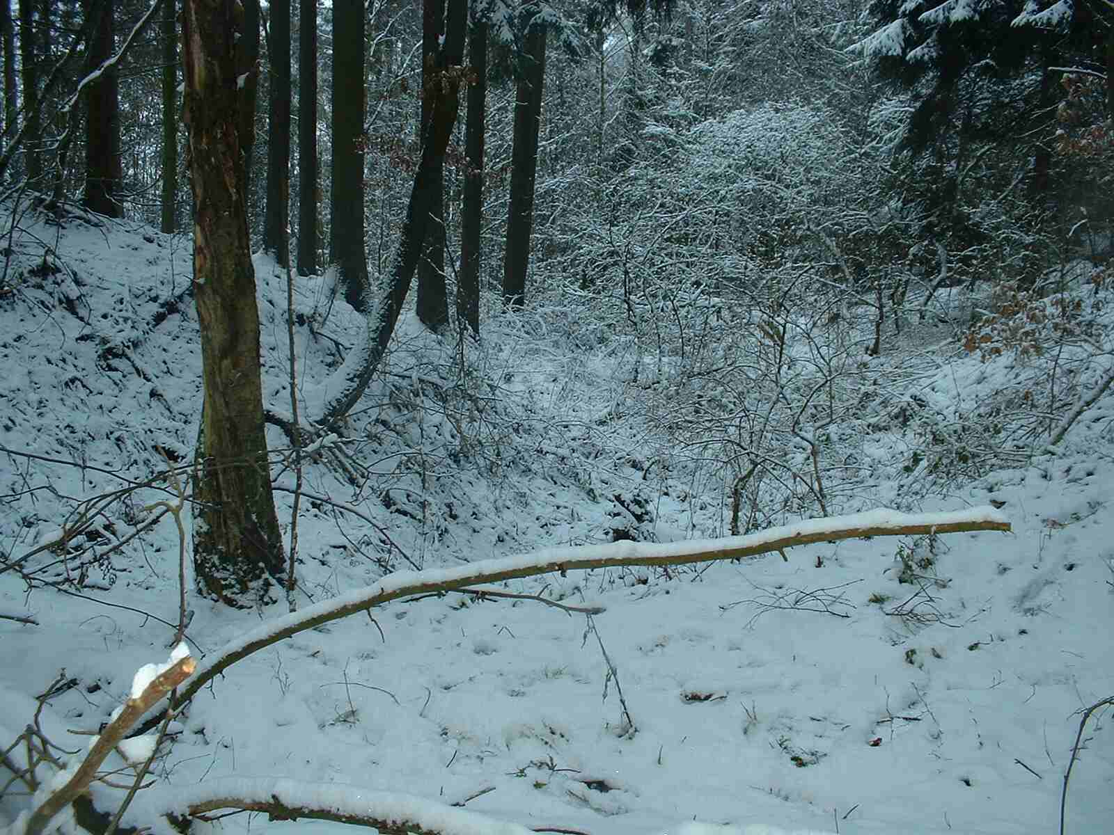 Auf der Kuppe biegt rechts ein Weg Richtung Industriehof ab. Diesen nehmen Sie zu Fuß. Nach 100 Metern erreichen Sie den Waldrand. Weitere 500 Meter weiter, kurz hinter einer ehemaligen Sandgrube auf der linken Seite und noch vor dem Tunnel über die Eisenbahn, sollten Sie links in den Wald gehen. Nach wenigen Metern sieht man einen beginnenden Taleinschnitt. Hier ist nach der Karte der Küppelborn.
